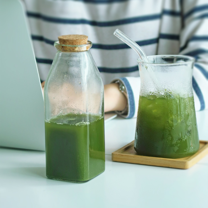 Pha uống trực tiếp: Cho 1 muỗng cà phê (~2-3g) bột rau má vào 300–500ml nước lọc hoặc nước ấm, khuấy/lắc đều.