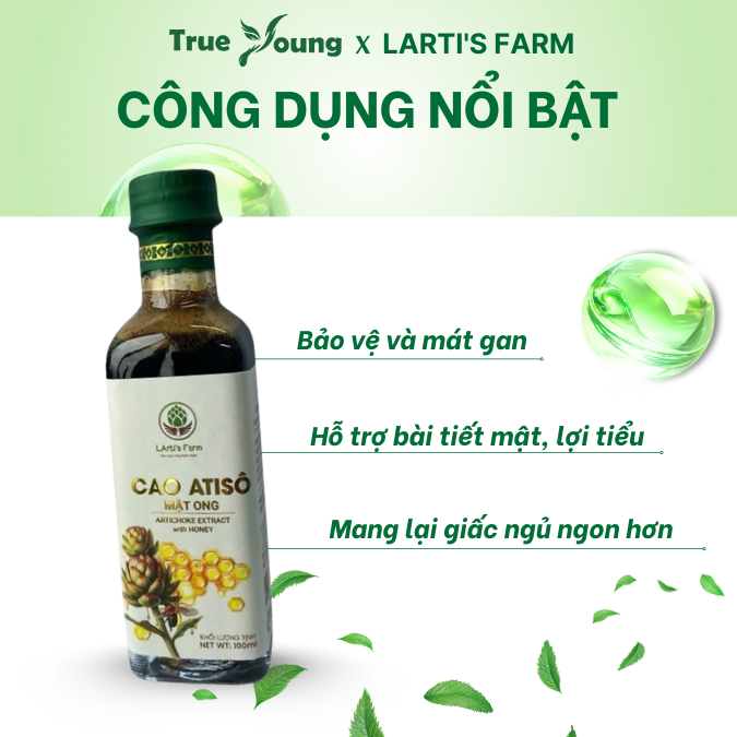 Cao lá tươi atisô hữu cơ, vi sinh, kết hợp mật ong nguyên chất.