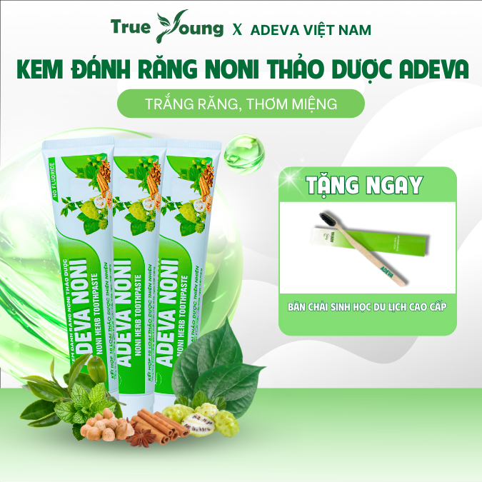 Kem đánh răng Noni thảo dược: Chiết xuất Trái Nhàu, trầu không, hạt cau, lá ổi, muối hồng, bạc hà, cam thảo, đinh hương…