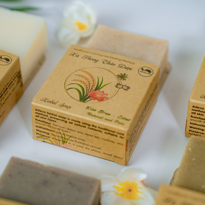 Xà bông thảo dược ADEVA NONI được làm từ dầu dừa, dầu mù u, glycerin, vitamin E và các tinh chất thảo mộc như sả chanh, nhàu, nghệ, trà xanh… giúp làm sạch nhẹ nhàng, loại bỏ bụi bẩn và tế bào chết mà vẫn giữ ẩm cho da. An toàn cho cả da nhạy cảm, với 9 hương tự nhiên: Dừa, Nhàu, Sả , Quế, Cám Gạo Hoa Sen, Trà Xanh.